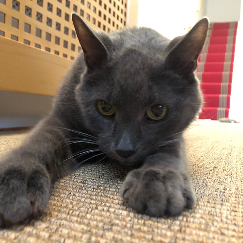 I am visiting these two characters twice daily for a week. Whilst Angelina keeps her distance, only allowing me the occasional leg rub when its time to eat. Pinot sees me as an ally and although still a little aloof sticks close to me, accepting a back rub when I arrive and once Angelina, has stopped harassing him, he is happy to hang out and play. Angelina prefers to amuse herself, batting a ball around an old cat scratching post for a while before disappearing upstairs after meals.